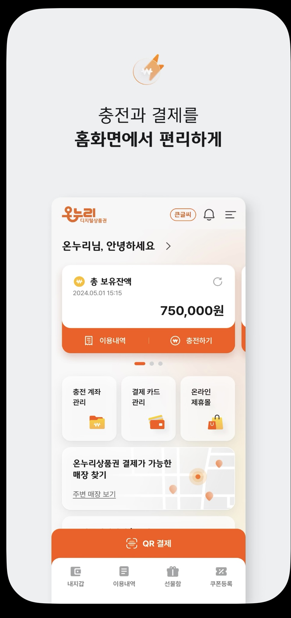 - 온라인: 온누리상품권 온라인몰에서 QR코드로 결제.
