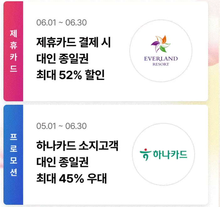- 캐리비안베이 연계: 캐리비안베이 종일권 구매 시 당일 오후 13:00부터 에버랜드 무료 입장.