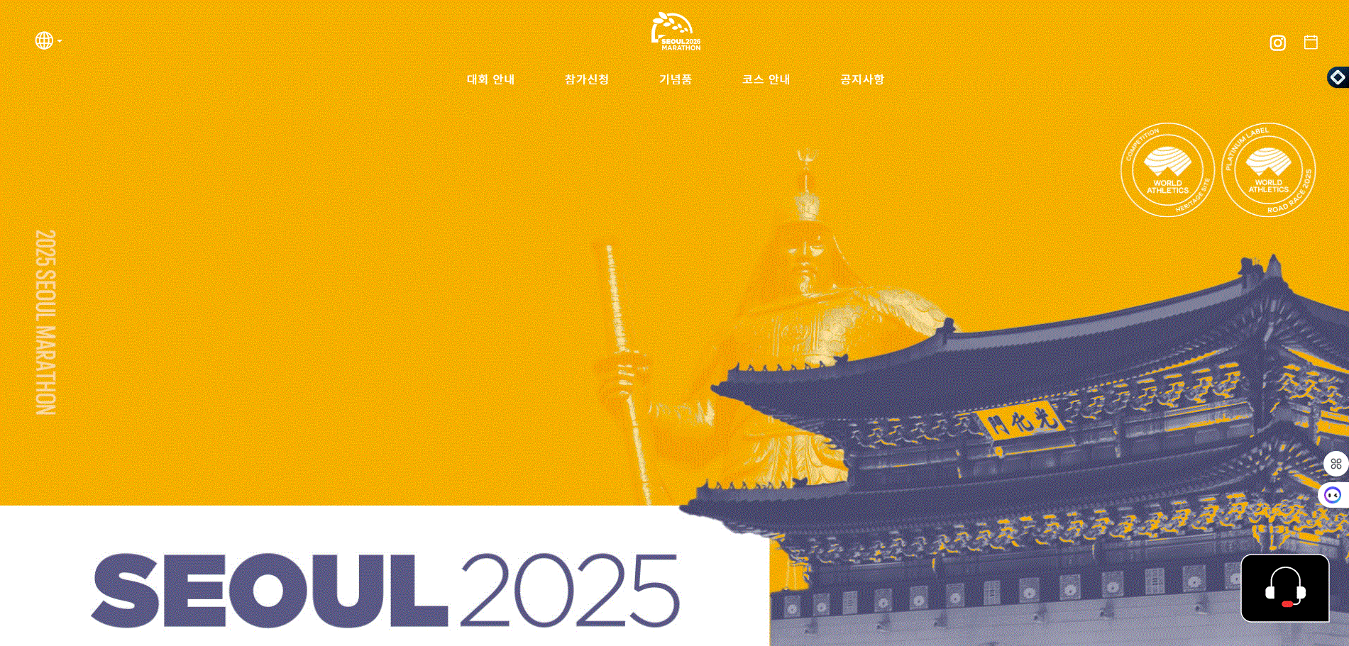 - 공식 웹사이트 접속: '동아마라톤' 또는 '서울마라톤'을 검색하여 공식 웹사이트에 접속합니다. (2026년 접수 시작 시, 메인 페이지에 '접수하기' 버튼이 활성화됩니다.)